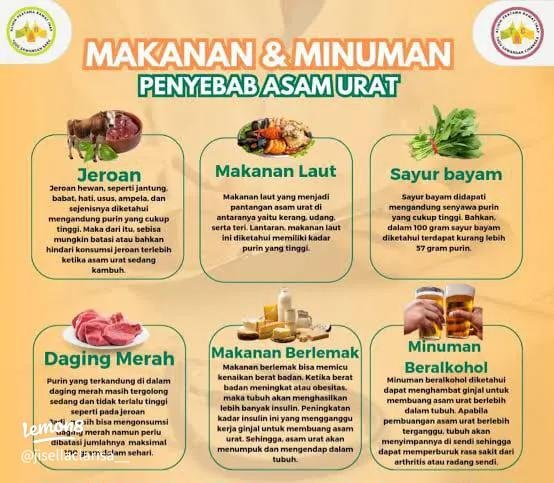 Purin merupakan senyawa kimia yang ditemukan dalam berbagai makanan, baik hewani maupun nabati. Ketika purin terlalu banyak dalam tubuh, ini bisa menjadi salah satu Penyebab Asam Urat, yang menyebabkannya naik ke tingkat yang tidak normal. Mengetahui sumber purin dapat membantu pengaturan pola makan yang lebih baik.